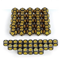 Write a reviewA set of 50 dice designed for use with Warhammer 40,000: Apocalypse, comprising 25 six-sided dice (D6s) and 25 twelve-sided dice (D12s). Each die is black in colour with orange details, and features Apocalypse skull design in place of 1. All other faces display a number set within an explosion.