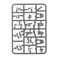This multi-part plastic kit contains the components necessary to assemble a Primaris Apothecary. Strikingly detailed, clad as he is in Mk X power armour, this miniature features far more accoutrements and gadgets than the standard Primaris Space Marine – as befits his battlefield role. Strung around the chest plate are several canopic jars, bearing purity seals: these are filled with progenoid organs that have passed his scrutiny, and will be used in the creation of further Primaris Space Marines. In his right hand he clutches a freshly-hewn organ upon which his gaze is fixed; another canopic jar hangs from his arm, ready. His left arm holds a narthecium, the grisly instrument of his craft, though this can be replaced with an optional absolver pistol (often the last thing a fallen brother will see…)