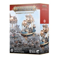 This set of 34 cards will help you keep track of your Kharadron Overlords in games of Warhammer Age of Sigmar. There are individual warscroll cards for each unit and faction terrain feature – detailing their profiles, wargear, options, and special abilities. They are an ideal way to easily check key information in the heat of battle. You'll also find special warscroll cards for use in Spearhead games.