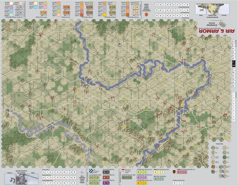 Air & Armor is a company-level simulation of a Hypothetical Soviet attack on West Germany in the mid-1980s. It depicts the collision of the Soviet 8th Guards Army and elements of the U.S. 3rd Infantry Division and West German 12th Panzer Division in a ferocious battle around the German city of Wurzburg. This new edition is lovingly recreated with new map artwork, new unit counters, new unit values, and updated rules.