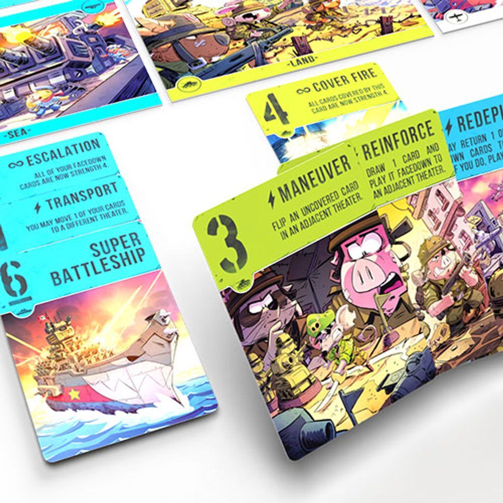 Battle for dominance across air, land, and sea in Air, Land & Sea: Critters at War! This fast-paced, tactical card game reimagines strategic warfare with a whimsical cast of animal commanders. Take control of adorable but fierce critter armies as you deploy troops, outmaneuver your opponent, and secure victory across multiple battlefronts. With easy-to-learn mechanics and deep strategic choices, this game is perfect for both newcomers and experienced players alike.