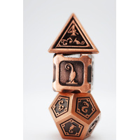 The Alchemist Metals Copper Dice Set is ideal for players who enjoy the physical presence of metal dice and want something visually distinct from traditional steel or silver finishes. The copper colour adds character and atmosphere, making it especially fitting for alchemists, artificers, dwarves or mechanically themed characters.