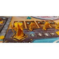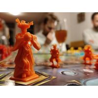 In addition to having a strong dose of controllability (the luck factor is minimal), the game features an innovative starred action-selection-system that confronts players with interesting choices: players can reincarnate their gods by performing their actions in a precise sequence, on pre-established paths of their starred player board, or they can give up some deities, jumping freely from one action to another of their board, to choose from time to time the situationally best actions.