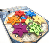 Plastic overlays hold the pieces snugly on the player board, giving every player the confidence to know their tiles are not moving.