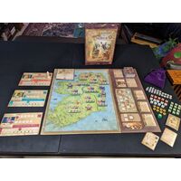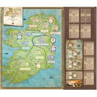 The game board shows a map of Ireland in the 5th century, with four Provinces-the same as today- but no counties yet. Wooden tiles represent the People, Druids, Chiefs, and Kings, and of course the High King at Tara. It is your job to break into the interrelated influences between these groups of people and get your new ideas accepted.