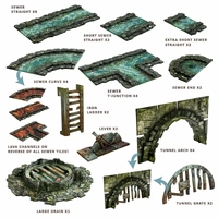 Write a reviewThe Ravenskeep Sewers pack can be combined with the Dungeon Terrain to transform your gaming area into the bowels of a thriving city. One pack will be enough to turn a full 2x2 gaming area into a network of sewer channels. This is a really thematic upgrade that sets the scene for all sorts of scenario objectives, and will work well alongside the Dungeon Terrain, the Vaults of Enveron set in the Maladum game, or any other terrain you have in your collection.