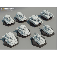 Write a reviewThe BattleTech Battlefield Support: Heavy Battle & Sweep Lances is a collection of eight plastic miniatures for use in the classic BattleTech tabletop and Alpha Strike games. The box also provides eight dry-erase cards, which are intended to directly support Alpha Strike gameplay, and eight battlefield support Cards.