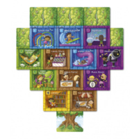 Building takes place over three weeks/rounds, and in each round, players use card drafting and spatial reasoning to add five new rooms to their treehouse. Players must pay attention to the other treehouses being built since they take turns determining which types of rooms score for everyone at the end of each round.