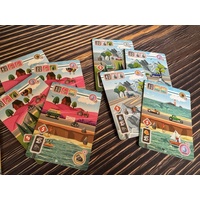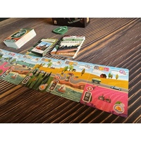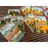 In Big Sur, players draft cards to use them either as resources to build new road sections or as the road sections themselves. Your linear path of cards will score for connecting terrain types and meeting other conditions. You can also add notable landmarks to your highway for other unique scoring conditions; these landmarks are based on actual scenic lookouts and locations on Big Sur.