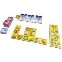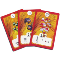 Castellion is a tile-laying game in which you form parts of the castle for defense against monsters. Each turn you flip over a tile and either use its special ability or place it as part of your castle. The more towers and keeps you form, the better your defense against attacks. Ranks prevent traitorous tiles from affecting you fully. When all three monsters have attacked and you still have a base of six tiles, you win.