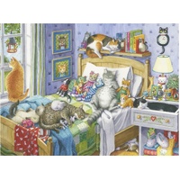 Enjoy a moment of pure relaxation with the Cat Nap Jigsaw Puzzle. This 500-piece large format puzzle features an adorable scene of contented cats snoozing in cozy spots, offering a heartwarming and soothing puzzling experience for animal lovers and casual puzzlers alike.