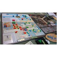 The game then moves into a post-conference phase where players implement the issues that they now control. These actions impact three basic game functions: clandestine operations, political activity, and military offensives. Clandestine operations has players try to establish political networks in conquered countries and colonies. Using a very simple mechanic of placing a network or removing an opponent's network, the historical ferment that occurred in Yugoslavia, France and across the world is simply simulated. A country or colony can only have one dominant side's network at any given time, and during political activity players can emplace friendly governments in exile that can be subsequently undermined and replaced if the supporting networks are later neutralized by one of your allies.
