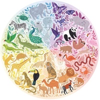 Write a reviewRavensburger Circle of Colours: Animals – 500 Piece Jigsaw Puzzle invites you to experience the circle of life in a whole new way. This captivating circular puzzle features a vibrant array of animals from around the world, including a peacock, parrot, crab, chameleon, koala, kangaroo, okapi, and monkey, all artfully arranged in a harmonious design that celebrates nature's diversity.
