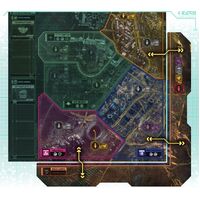 The Badlands district board is a 4-fold game board that is attached to the bottom right corner of Night City, mirroring the geography of the Cyberpunk 2077 in-game location.