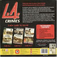 Write a reviewDetective: L.A. Crimes, the first campaign expansion for Detective: A Modern Crime Board Game, consists of three separate cases that come together to form a full story. Travel to sunny California, and delve deep into the drug-filled Los Angeles of the 1980s.