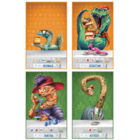 Dinosaur Tea Party is a game of pure deduction for 2-5 homo sapiens. Each player takes a card corresponding to one of the dino guests. Players take turns asking each other questions or guessing their dinosaur's name. If someone guesses your name, draw a new card. The first player to guess three names, wins the game.