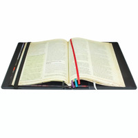 5 colored ribbons for marking important pages (black, red, blue, purple, & white)
