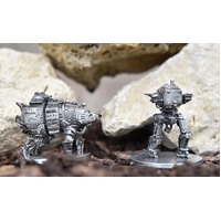 - 2 large mech miniatures and base snaps (the mech bases are 50mm wide and the snaps are 51mm wide; mechs are metal in the Ironclad version)