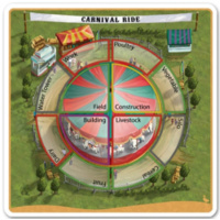 Grand Fair, an expansion for Fields of Green, introduces the Grand Fair Attractions, which let the players interact with the Grand Fair in many new and exciting ways! It also includes additional locations, objectives, components for a fifth player and rules and material for solo game.