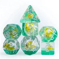 - Unique fish inclusions: Each die showcases miniature fish floating in translucent resin, evoking the peaceful beauty of a fish bowl or coral reef.