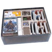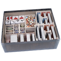 Insert compatible with Gloomhaven: Jaws of the LionĀ®. The design provides both efficient storage and improved game play. Many of the trays can be utilised during the game, and they greatly aid set-up and clear-away times. The boards and rule books act as a lid on top of the trays.