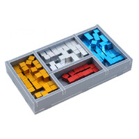 Insert compatible with Pipeline®, and includes space for the Emerging Markets® expansion. The design provides both efficient storage and improved game play. Many of the trays can be utilised during the game, and they greatly aid set-up and clear-away times. The boards and player boards act as a lid on top of the trays.