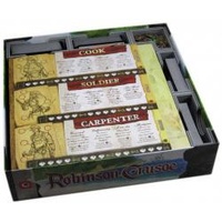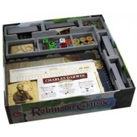 Write a reviewThis Campaign 3 insert is designed to be compatible with Robinson Crusoe® and the Voyage of the Beagle Vol. 1 ® expansion. The design provides both efficient storage and improved game play. The trays can be utilised during the game, and they greatly aid set-up and clear-away times. The rules and boards act as a lid on top of the trays. The insert is arranged in two layers as shown. Note that the island hexagon tiles and first player token are stored in between the other trays at the bottom of the image.