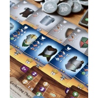Forges of Ravenshire is played over 4 seasons or rounds. Each season starts with the gathering phase where players will acquire contracts, recruit guild members, and gather resources. Players roll their dice workers and place one of them on an available location to gather resources. Then retrieve a different dice worker to gather even more resources. However, the various workers are from different guilds and when retrieved will activate the guilds you have invested in. All players will take turns placing one of their workers and retrieving another worker 3 times.