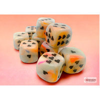 The larger 16mm size gives these dice a satisfying weight and presence in hand, making them ideal for key rolls, damage resolution or as a standout dice set for regular play. The strong contrast between the colourful dice and black pips keeps results clear under a wide range of lighting conditions.