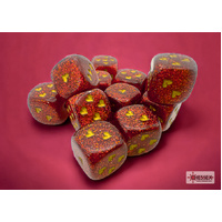 The Heart Dice: Glitter Ruby Red/Gold 16mm D6 Heart-Shaped Pips Dice Block is a bold and elegant dice set designed for tabletop gamers who want a touch of glamour alongside reliable performance. Featuring a rich ruby red glitter finish with striking gold heart-shaped pips, these dice combine visual impact, excellent readability and a satisfying feel in hand.