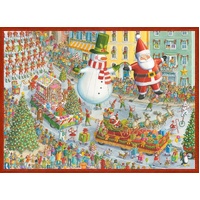 Write a reviewRavensburger Here Comes Christmas! – 500 Piece Jigsaw Puzzle invites you to immerse yourself in the festive spirit with a delightful holiday parade scene. This charming puzzle features Santa Claus leading the procession in his sleigh, accompanied by the Christmas Princess, a marching band, and joyful townsfolk, all set against a vibrant winter backdrop.