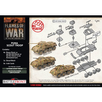 includes four plastic Puma or Sd Kfz 234 (2cm or Sd Kfz 234 (7.5cm) sprues, four Plastc Crew Sprues, one Decal Sheet, and three Unit Cards.