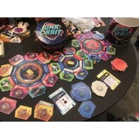 Space — the final junkyard. Good thing one planet's trash is another planet's treasure! In Junk Orbit, you're captain of your own scavenger ship, picking up space junk and transporting it to any city that will take it. Launch your junk ... uh, *cargo* ... out of your airlock to propel your ship! Race to deliver your cargo as you navigate the orbits of nearby planets and moons! It's astrodynamics for fun and profit! On your turn, carry out these three steps: