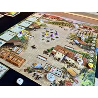 In La Granja, 1-4 players control small farms by the Alpich pond near the village of Esporles on the island Mallorca. During the game, players try to steadily expand their farms into the mighty country estate La Granja. They also seek to deliver goods to the village. Here, speed means everything.