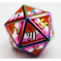 The Lesbian Pride Flag Metal Dice Set is ideal for players who want their dice to reflect their identity while maintaining premium quality and tabletop reliability. The warm colour palette stands out clearly on the table, making each roll visually striking and easy to read.
