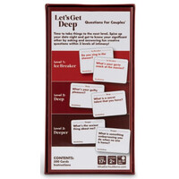 What's Inside: 500 Let's Get Deep Cards (100 Ice Breaker, 200 Deep & 200 Deeper Cards) and instructions