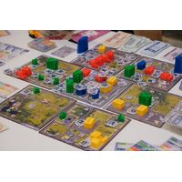 Magnate: The First City is a midweight strategy game for 1-5 players. Each turn players try to grow their property empire by performing different actions, including: buying plots of land, constructing buildings, marketing their developments and selling them completely for their capital value. Once per round, they will also get the chance to attract tenants to any empty buildings they have. If they are successful, they will start collecting rent from their tenants and increase the value of their holdings. At the same time, they will also create new development opportunities for themselves and their opponents.