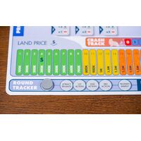 But while the players acquire more and larger properties, the price of land keeps rising higher and higher. Eventually, it becomes completely unsustainable and a game-ending crash that will destroy the value of players’ properties becomes inevitable. When exactly the crash happens, however, is shaped by the players: How much land they buy and how much property they sell will more make a crash on any specific turn more or less likely. Players must time their actions carefully to avoid substantial losses while maximizing their profits. Only then will they emerge victorious as the city’s wealthiest property magnate.