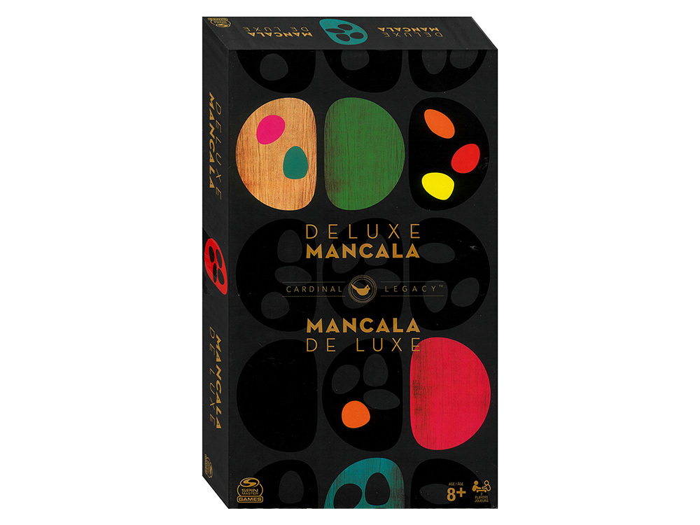 Cardinal Legacy - Deluxe Mancala. Including a folding Mancala board, 48 coloured glass movers, and instructions. Cardinal Legacy products are crafted from wood and feature eye-catching, decorative finishes. They are meant to be displayed.