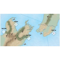 "Maori" is a wargame for one to four players, of clan warfare typical in Polynesia before European contact. Players build war canoes and train warriors (including the elite Royal Guard) to create a force to strike at their adversaries, while protecting or even fortifying their home village. The player is represented on the board as the Head Chieftain- if this unit is killed, the game is lost.