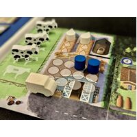 Milkman plays quickly, is easy to teach, and comes with great components like custom dice, personal farming and neighborhood boards, cow meeples, and much more.