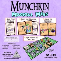Write a reviewMagic is out of control in this wildly chaotic expansion for Munchkin—welcome to Munchkin Magical Mess! Step into Princesses' palaces, magical schools, and enchanted forests, where spells go haywire, creatures run amok, and the loot is as bizarre as ever.