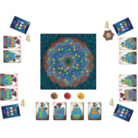 In Noctiluca, 104 colourful translucent dice fill the pool on the game board to represent the different glowing noctiluca. Players take turns diving into the water from the edges of the shore to collect the noctiluca dice from the board and keep them safely in jars until they can deliver them to healers. After two rounds, players compare points from their successful deliveries and the player with the most points wins.