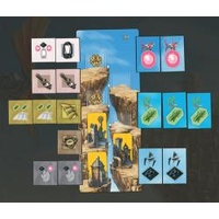 Noria is the debut title from Sophia Wagner, winner of the Spiel des Jahres fellowship in 2015. The talented, young author created an entirely new steampunk universe specifically for this game, and artists Michael Menzel and Klemens Franz have managed to bring her vision to life. At the center of the game is an innovative mechanism called "wheel building". Each player has an action wheel consisting of three rings, with slots for a number of different action discs. Over the course of the game, players try to obtain new discs and manipulate the rings of the wheel to optimize their action selection. Additionally, to ensure their investments bear fruit, they also need to bribe politicians with knowledge.