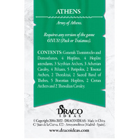 Onus! Army IV: Athens Expansion expands the ONUS! system with the versatile and tactically flexible forces of ancient Athens and its allies. Known for combining solid hoplite formations with skirmishers, missile troops, and capable cavalry, Athenian armies relied on adaptability and coordination to meet a wide range of battlefield challenges across the Greek world.