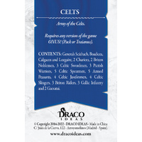 Onus! Army VIII: Celts Expansion expands the ONUS! system with the fierce and warlike armies of the Celtic world. Known for their aggressive charges, warrior culture, and reliance on momentum and personal bravery, Celtic forces bring a very different battlefield dynamic compared to the disciplined formations of Mediterranean empires.