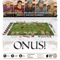 ONUS! puts you in charge of powerful armies of the Ancient World, in a system similar to that of battle games with miniatures, but using cards to represent the units on the battlefield. Relive the Punic Wars, the Peloponnesian and Greco Persian Wars, the rise of Macedonia, the Macedonian Wars, the Greek Wars or the Gladiator War. Whether in campaigns of several chained battles, in scenarios or point-based, ONUS! makes every game different.
