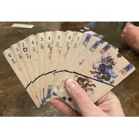 When you pass, if you've played cards and all of those cards have orange animals at the top, flip the cards so that the blue animals are at top. Each time you flip a card, you change its value depending on its suit: e.g., the water 4 becomes a pair of Qs, the wood 6 becomes a A+bamboo (and each time you play a card with bamboo, you take a bamboo token from the reserve), the earth 8 becomes a Q+panda (with you stealing a bamboo from an opponent for each panda you play), the fire 3 becomes a 10+fire, with the fire being a value of your choice when played.