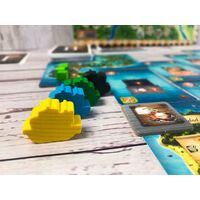 Pirates of Maracaibo is a standalone game in the same franchise as 2019's Maracaibo, and players who are familiar with that game will recognize some beloved concepts from the original. However, new players can jump right in with no prior knowledge of the original game as Pirates of Maracaibo is an independent game with a more accessible rule set. The game plays over three rounds in which you sail the Caribbean, hire crew, ally with other ships, explore the shore, amass the most treasure, and (ideally) retire to a secluded island as the most revered pirate in history. Cast off sailors and swashbucklers, cast off!