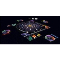 On a turn, a player will firstly move a matter or planet token in a clockwise direction around the star. The board is mapped with a series of lines, tracing orbits around the star, and it is along these lines that the tokens are moved. If a matter token moves onto a space occupied by planet token, then the matter token is placed on the player's mat (on the respective planet). In the same way, planets can also be moved onto matter tokens, placing the matter tokens on the player's mat.